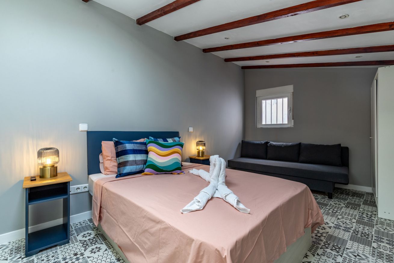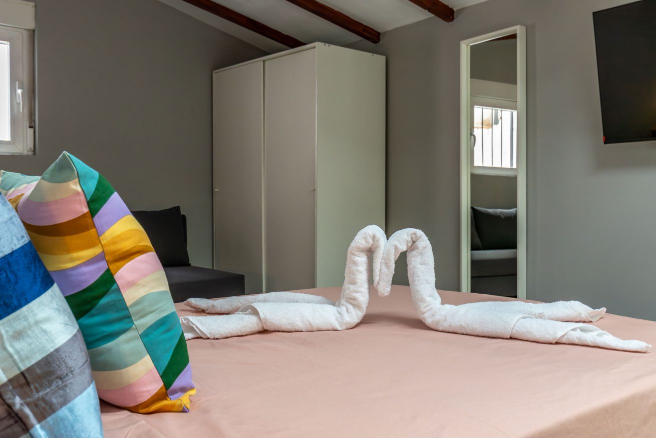 El alojamiento tiene 2 habitaciones con una cama doble cada una, y 1 sofá-cama en el salón. El acceso a las habitaciones es mediante una escalera de caracol según fotografías. Estas escaleras no son adecuadas para personas con movilidad reducida.