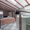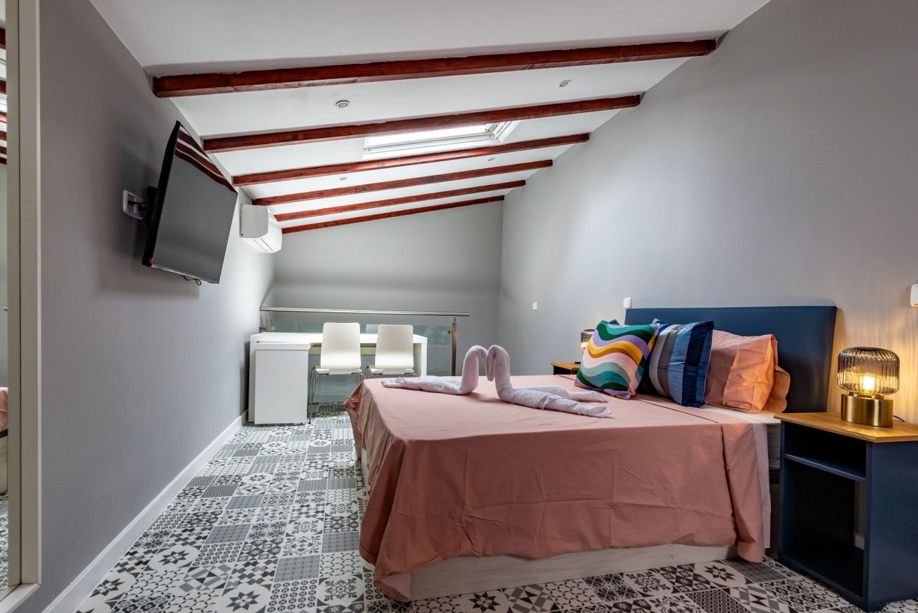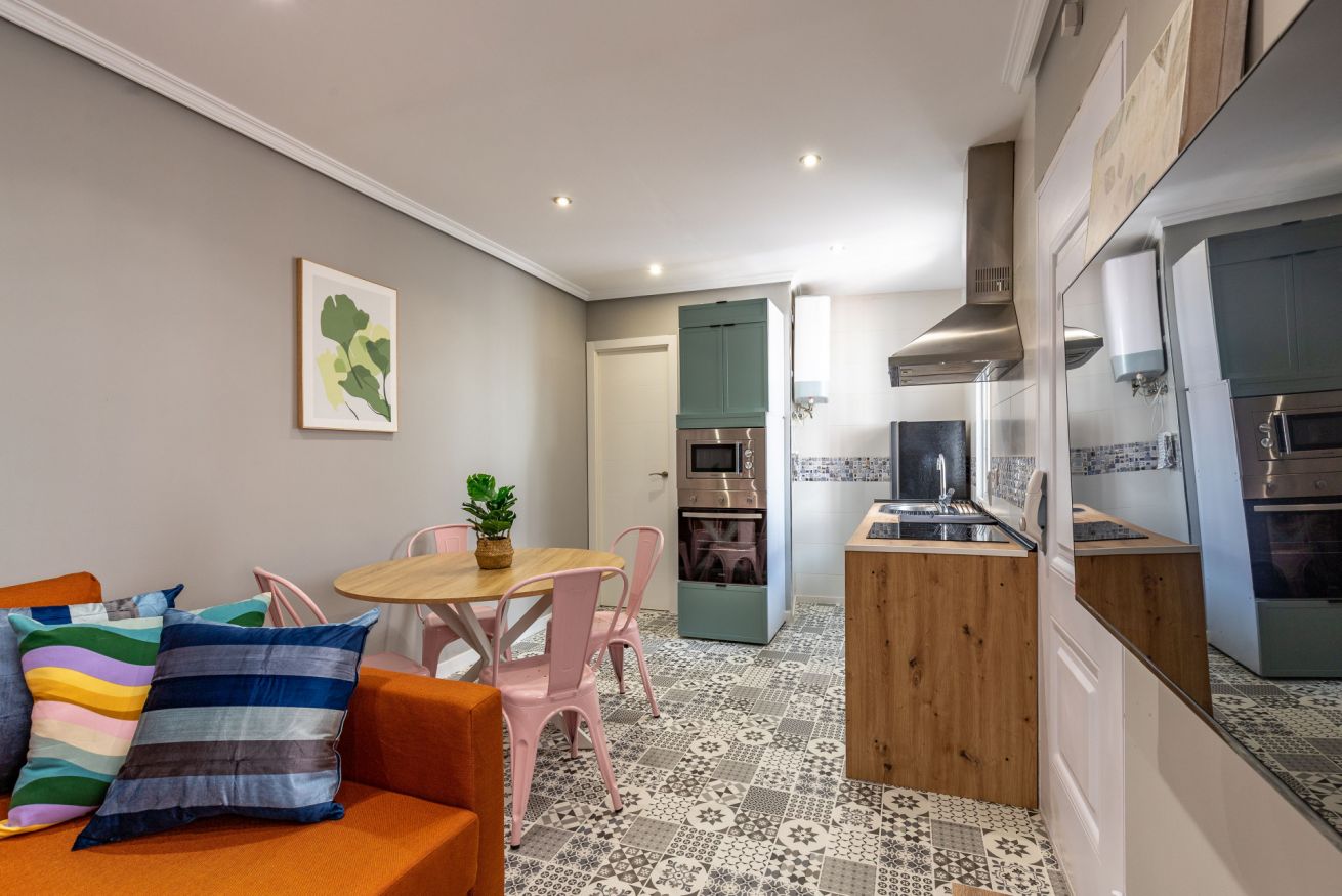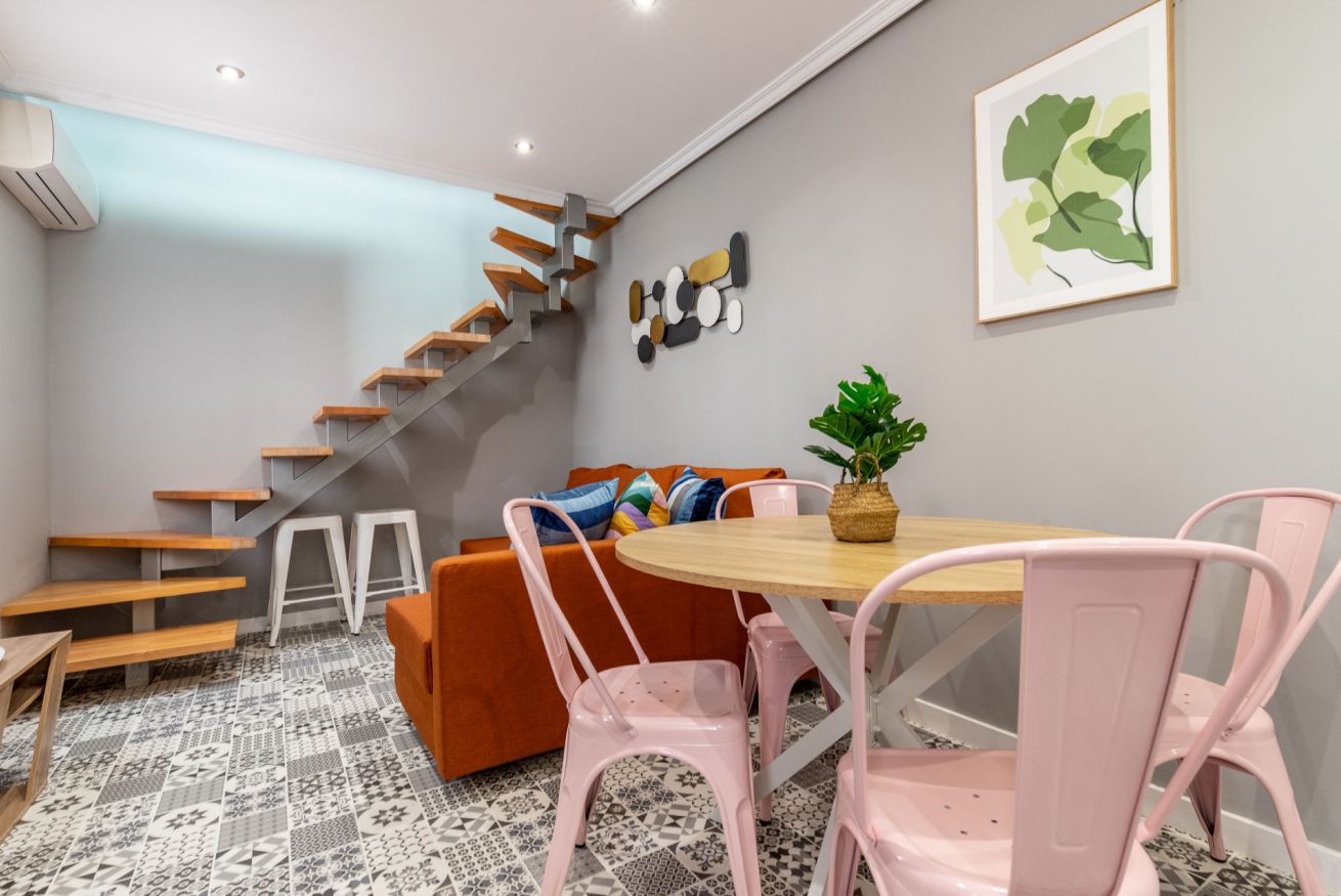 El apartamento es una preciosa vivienda-dúplex con decoración moderna, la habitación en la parte superior con acceso mediante una escalera. Dispone de cama de matrimonio, sofá-cama, armario y un escritorio como zona de trabajo. Con cocina tipo americana totalmente equipada y un moderno baño con ducha. Wifi, calefacción y Aire Acondicionado.