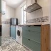 Hay una lavadora que puede utilizarse sin coste extra y encontrarás un tendedero plegable, Plancha y Tabla de planchar.