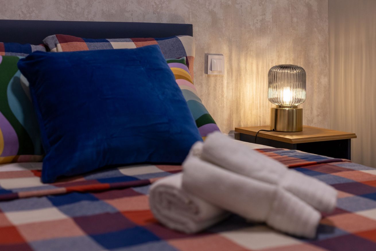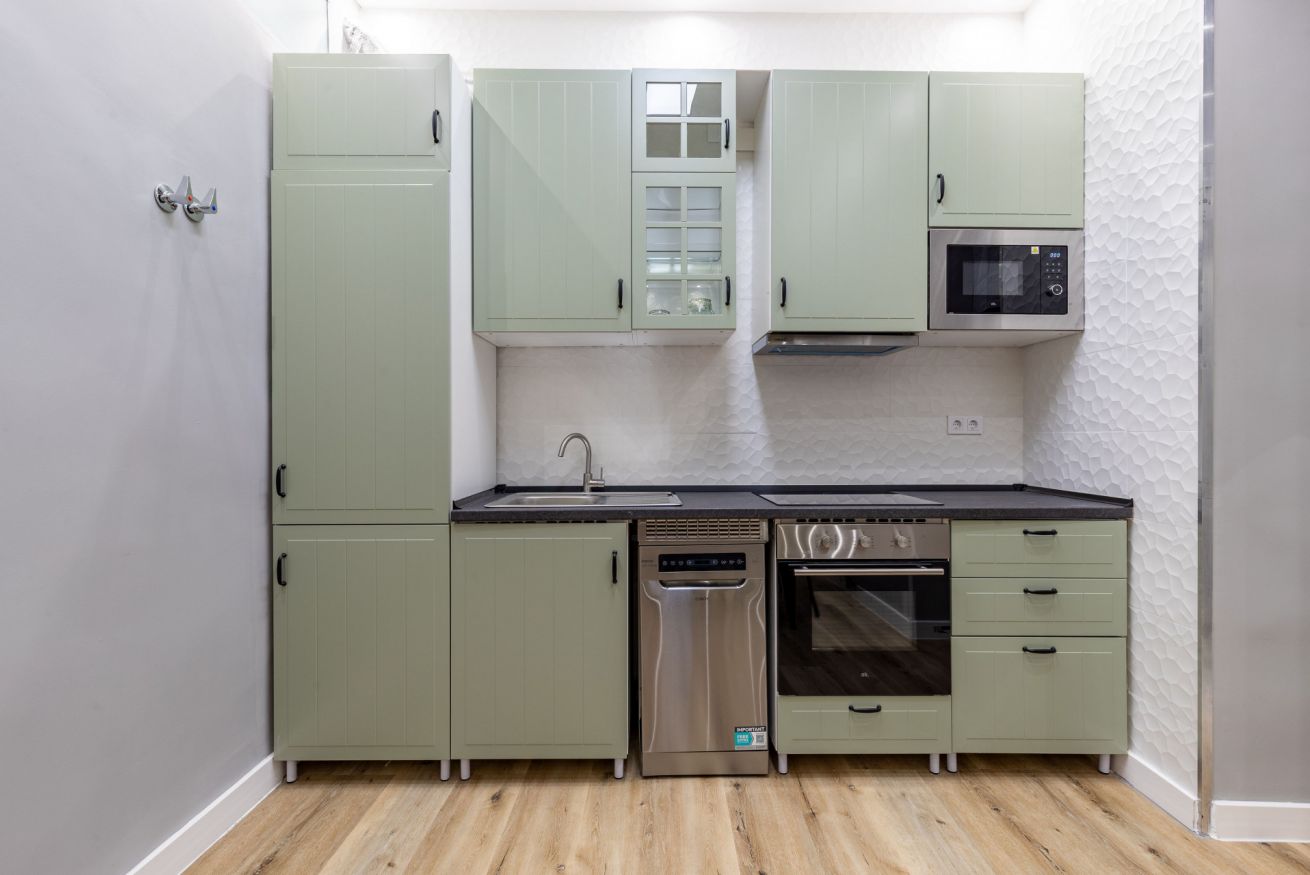 Equipped kitchen, living room with a sofa bed and Smart TV. One bedroom with a double bed and a full bathroom.