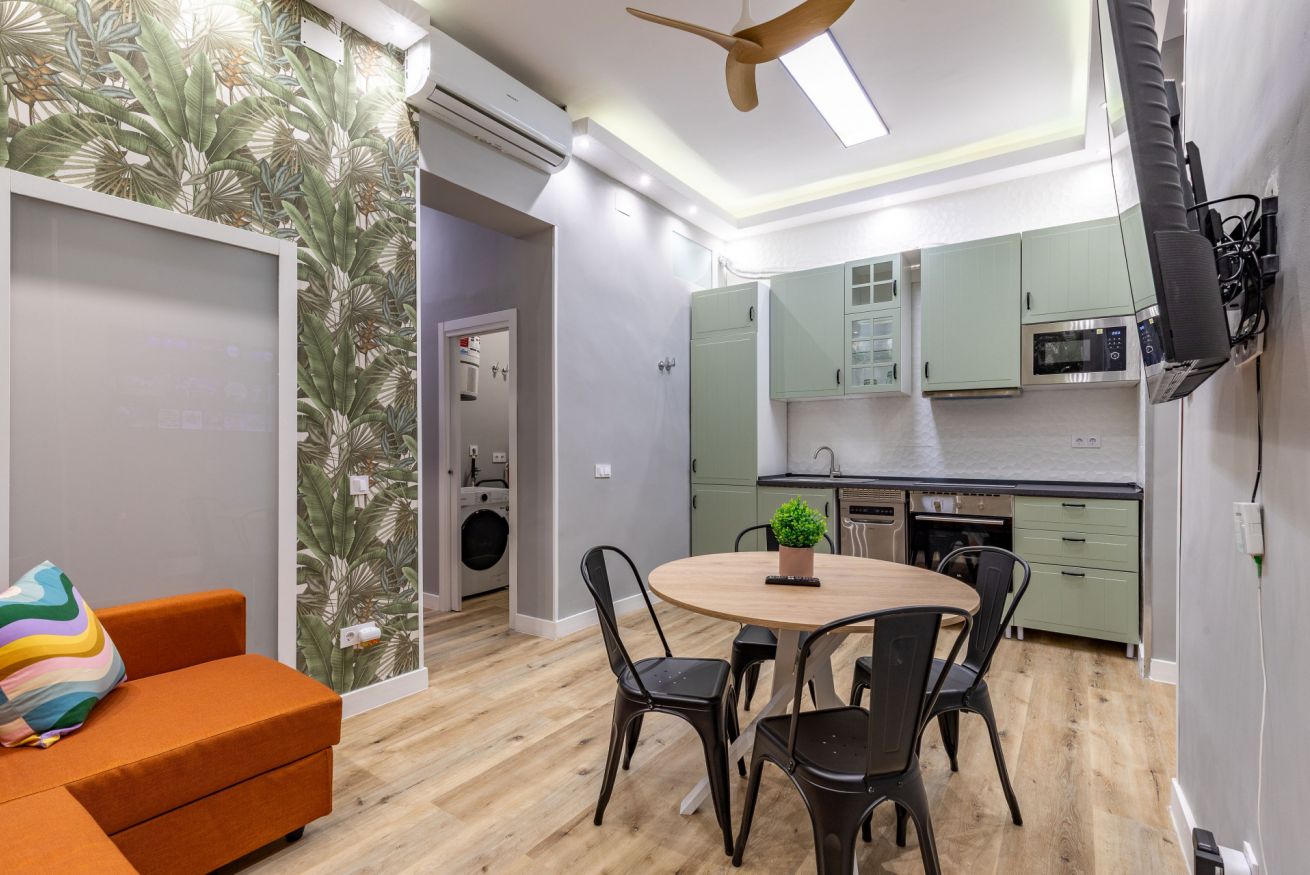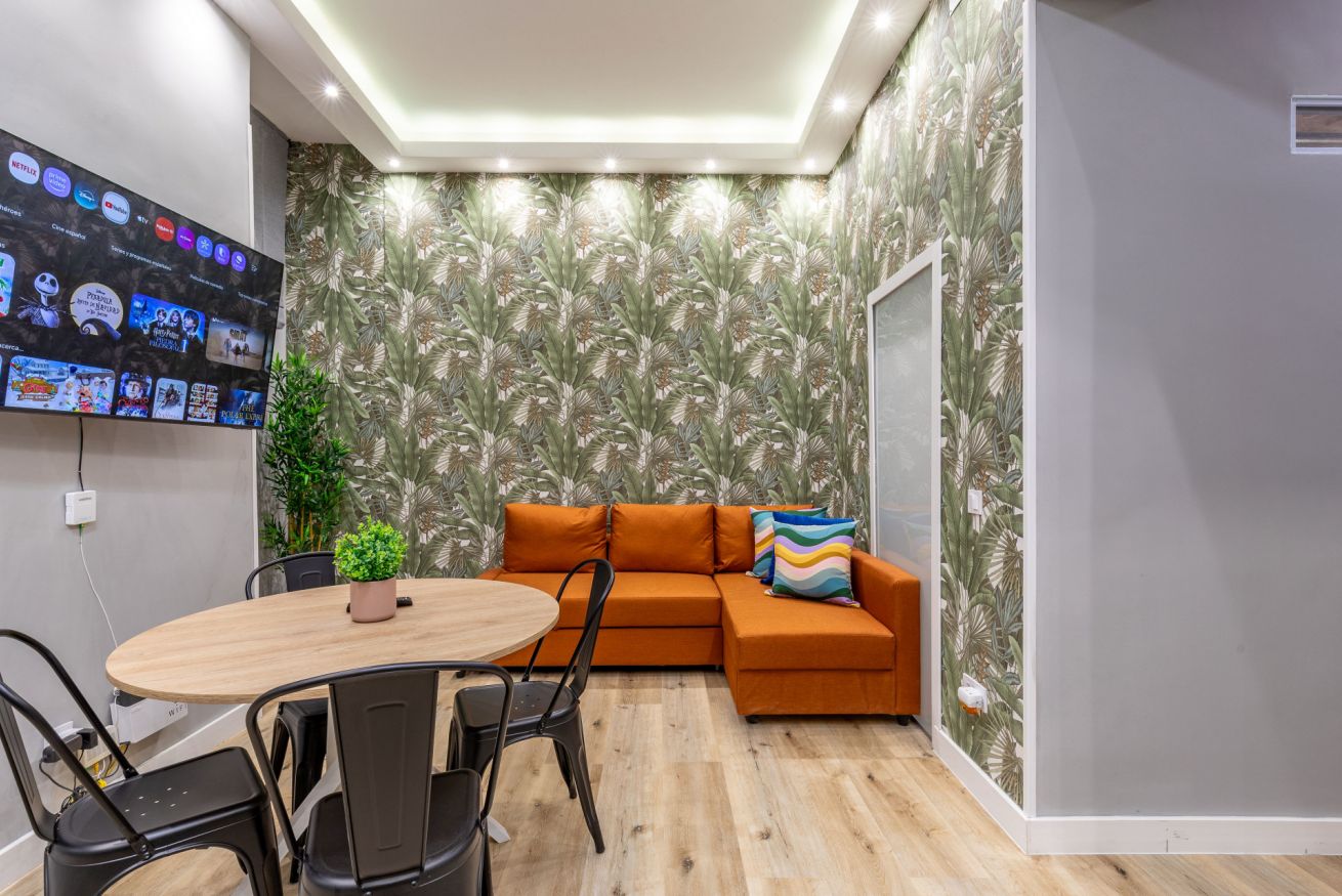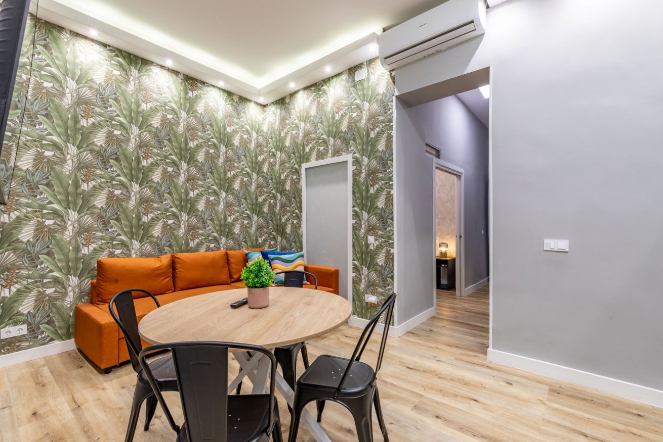 Wi-Fi, heating, and air conditioning. Located in the heart of Madrid and the Malasaña neighborhood. Strategically situated next to the Noviciado, Plaza de España, Ventura Rodríguez, San Bernardo, Bilbao, and Tribunal metro stations. You can reach Madrid's Gran Vía on foot (less than 5 minutes).